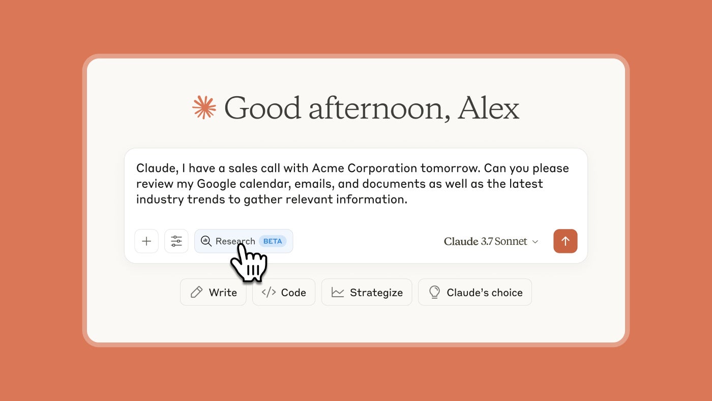 Along with the analysis launch, Anthropic additionally revealed two new Google integrations for Claude: The AI can now join with the consumer’s Gmail and Google calendar to supply extra helpful, context-conscious solutions. These additions construct on Google Docs integration that was first reveals in November.